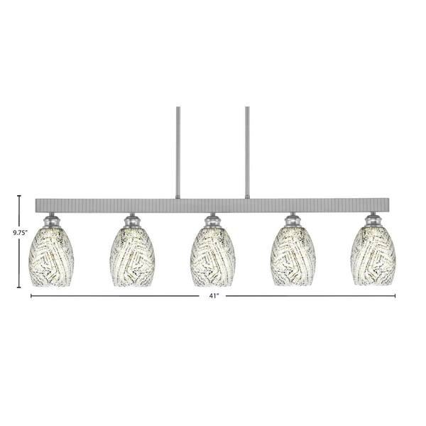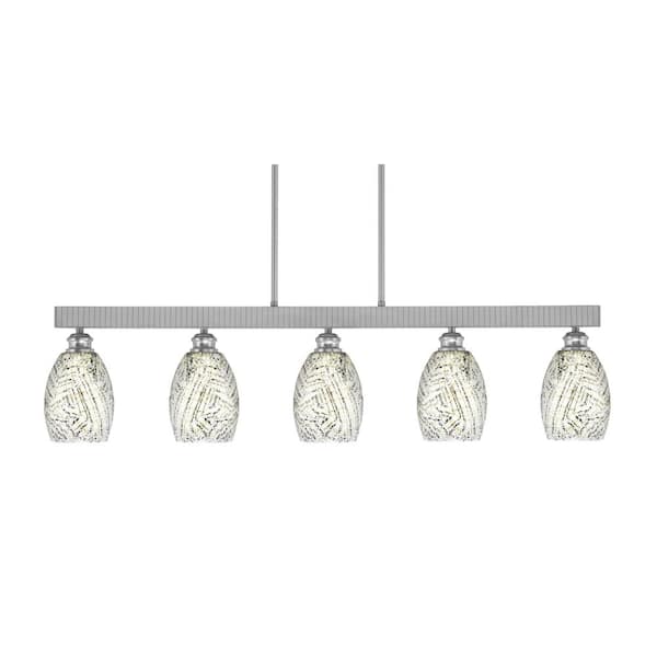 Albany 60-Watt 5-Light Brushed Nickel Linear Pendant Light with Natural Fusion Glass Shades and No Bulbs Included