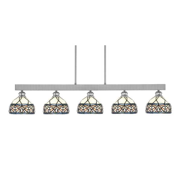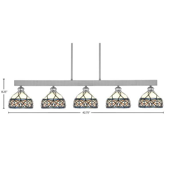 Albany 60-Watt 5-Light Brushed Nickel Linear Pendant Light with Royal Merlot Art Glass Shades and No Bulbs Included