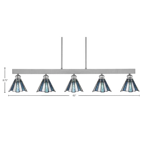 Albany 60-Watt 5-Light Brushed Nickel Linear Pendant Light with Sea Ice Art Glass Shades and No Bulbs Included