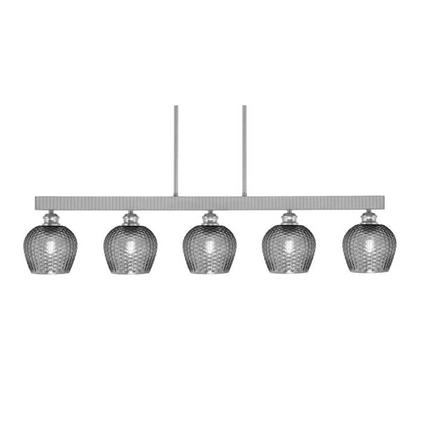 Albany 60-Watt 5-Light Brushed Nickel Linear Pendant Light with Smoke Textured Glass Shades and No Bulbs Included