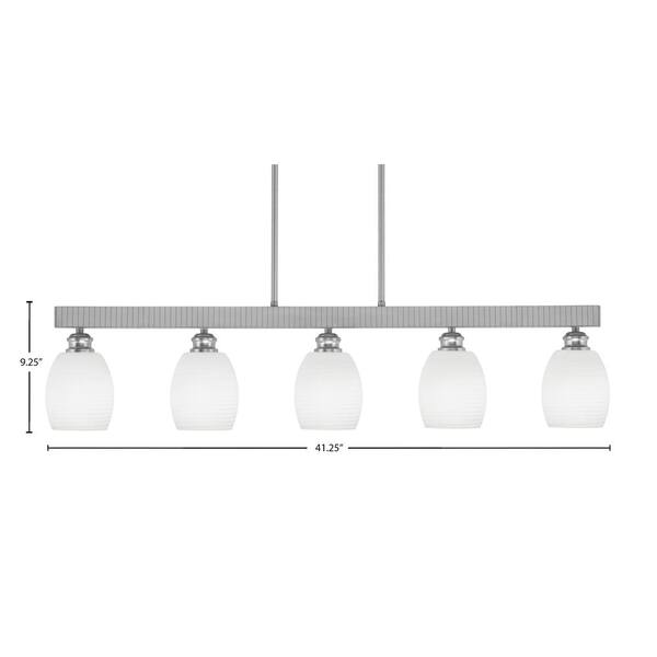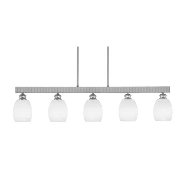 Albany 60-Watt 5-Light Brushed Nickel Linear Pendant Light with White Linen Glass Shades and No Bulbs Included