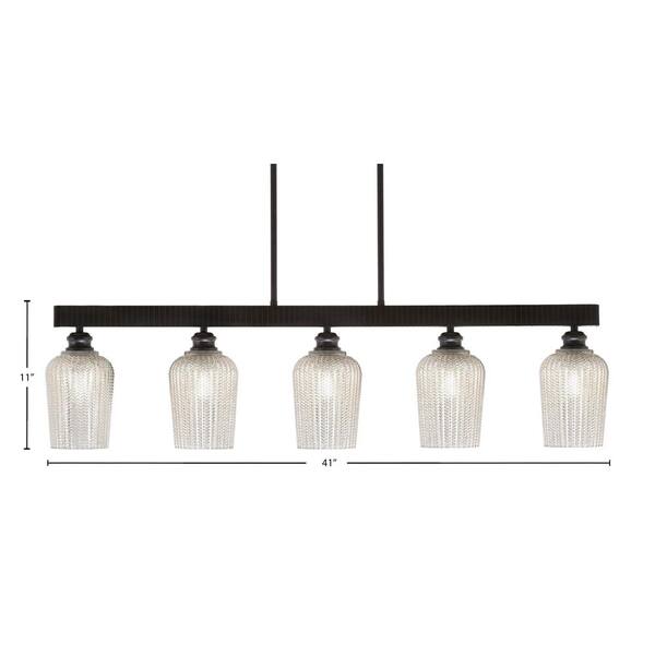 Albany 60-Watt 5-Light Espresso Linear Pendant Light with Silver Textured Glass Shades and No Bulbs Included