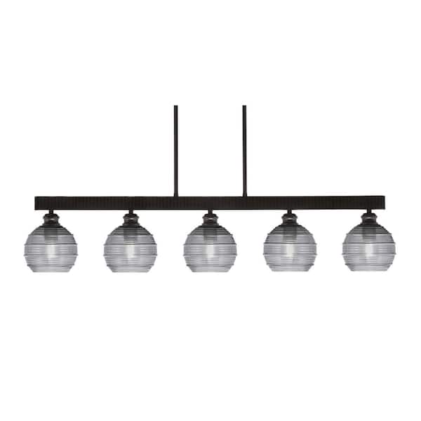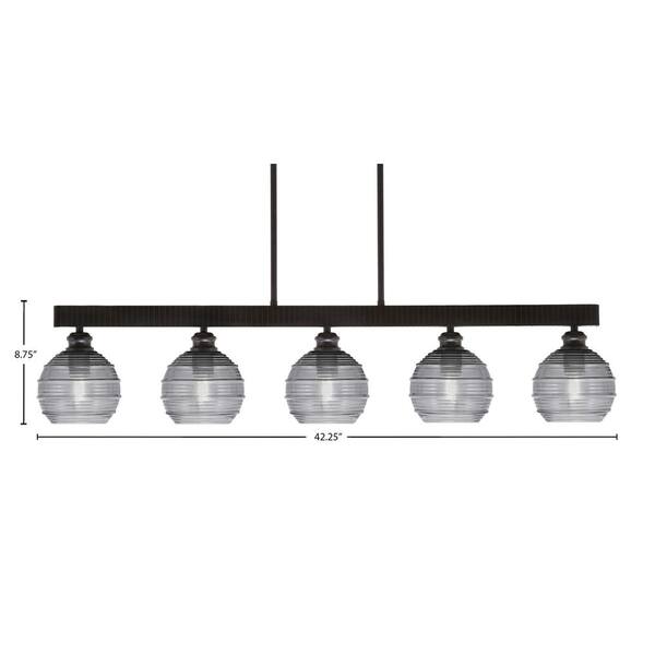 Albany 60-Watt 5-Light Espresso Linear Pendant Light with Smoke Ribbed Glass Shades and No Bulbs Included
