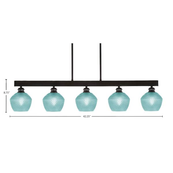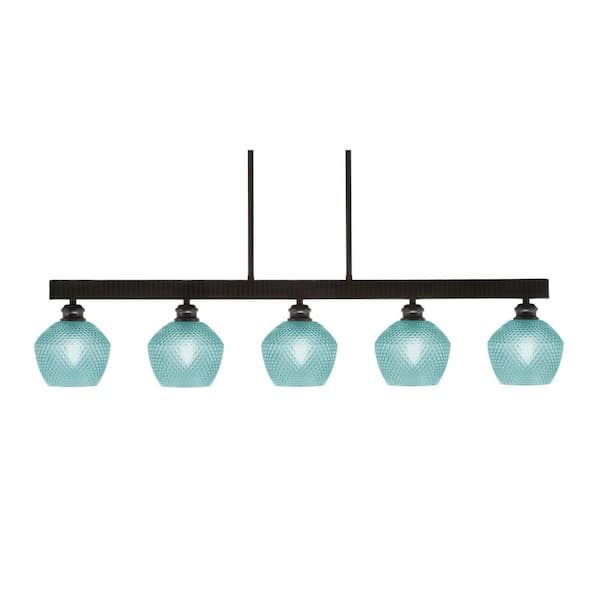 Albany 60-Watt 5-Light Espresso Linear Pendant Light with Turquoise Textured Glass Shades and No Bulbs Included