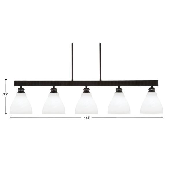 Albany 60-Watt 5-Light Espresso Linear Pendant Light with White Marble Glass Shades and No Bulbs Included
