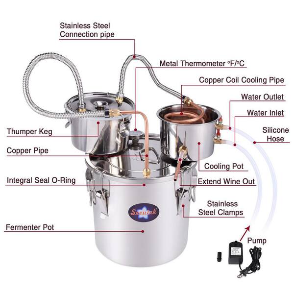 Alcohol Still 10 Gal. Stainless Steel Water Copper Alcohol Distiller Home Brewing Kit with Thumper Keg for DIY Wine