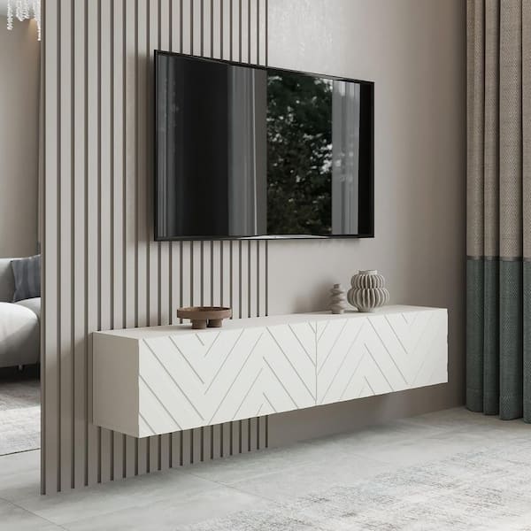 Alessio White 59 in. Floating TV Stand Fits TV's up to 65 in. with Wall Mount Feature