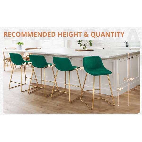 Alexander 24 in. Emerald Bar Stools Low Back Metal Frame Counter Height Bar Stool With Velvet Upholstery Seat (Set of 2)