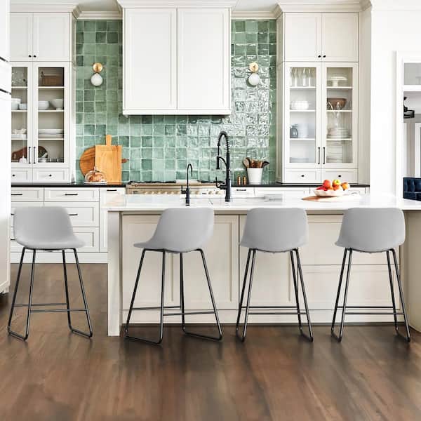 Alexander 24 in. Light Gray Bar Stools Low Back Metal Frame Counter Height Bar Stool With Velvet Upholstery (Set of 2)