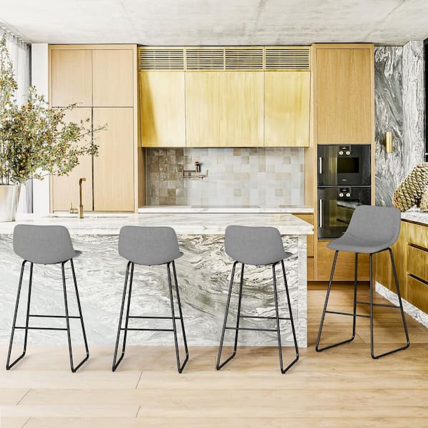 Alexander 30 in. Gray Bar Stools Low Back Metal Frame Counter Height Bar Stool With Fabric Upholstery Seat (Set of 4)