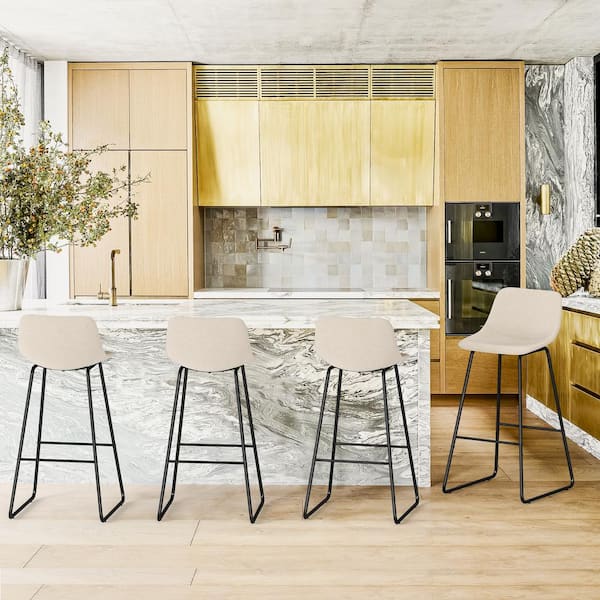 Alexander 30 in. Linen Bar Stools Low Back Metal Frame Counter Height Bar Stool With Fabric Upholstery Seat (Set of 4)