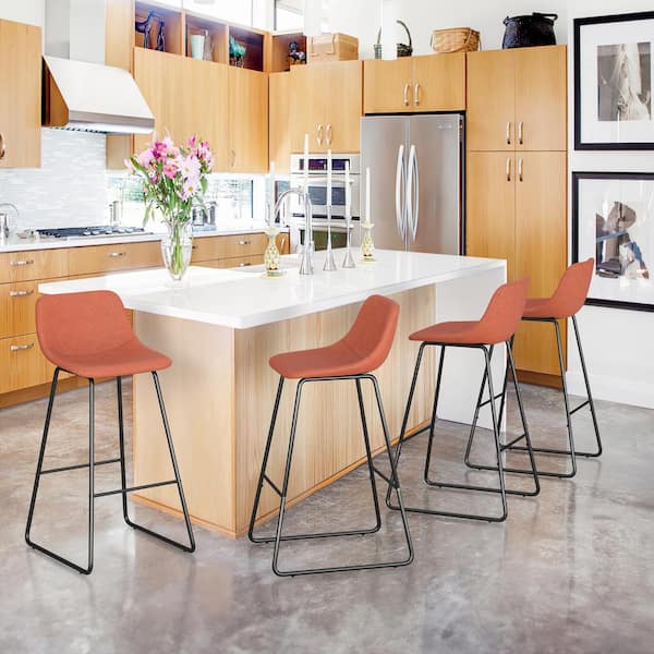 Alexander 30 in. Orange Bar Stools Low Back Metal Frame Counter Height Bar Stool With Fabric Upholstery Seat (Set of 2)