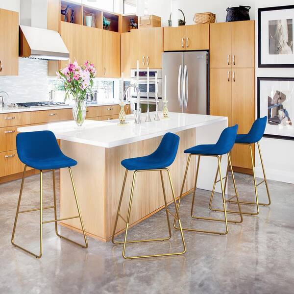 Alexander 30 in. Royal Blue Bar Stools Low Back Metal Frame Counter Height Bar Stool With Velvet Upholstery (Set of 2)