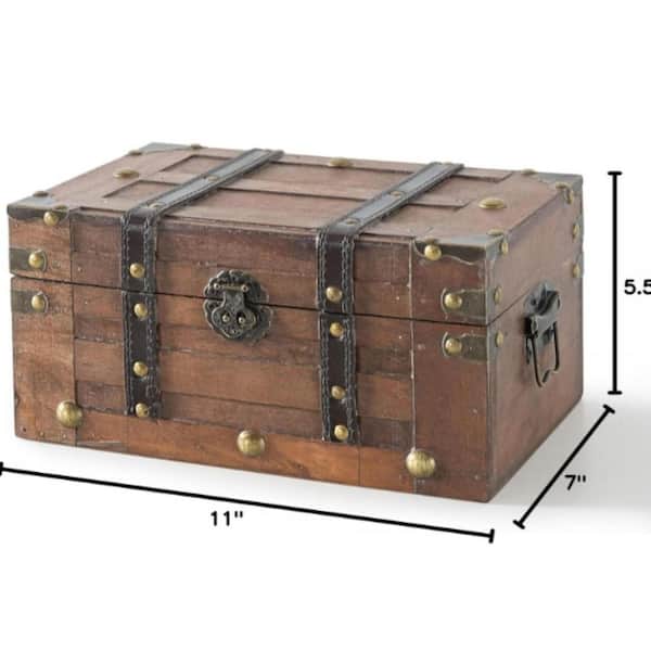 Alexander Small Wooden Treasure Chest, 11 in. x 7 in. x 5.5 in. Hinged Lid Storage Box, Vintage Pirate Keepsake Trunk