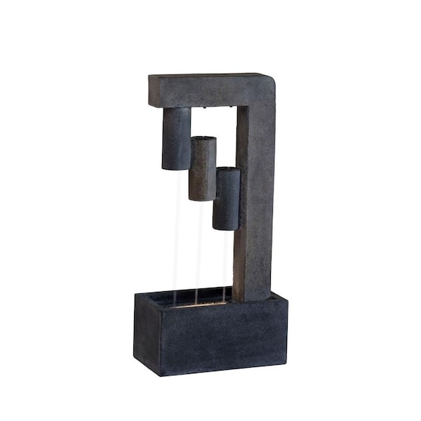 32.25 in. Tall Indoor Outdoor Endurance Resin Fountain with Water Pump and LED Light, Stone Gray