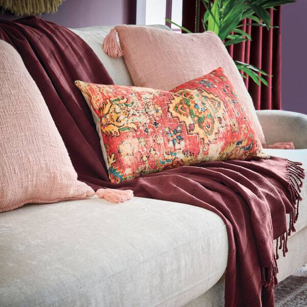 Alistaire Burgundy Farmhouse All Natural Turkish Cotton Throw Blanket
