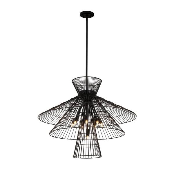 Alito 60-Watt 8-Light Matte Black 28 in. Shaded Chandelier Light with Matte Black Iron Shade With No Bulb Included