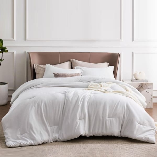 All Seasons 3-Piece California King Size Bedding Set with Comforter and Pillow Shams, White