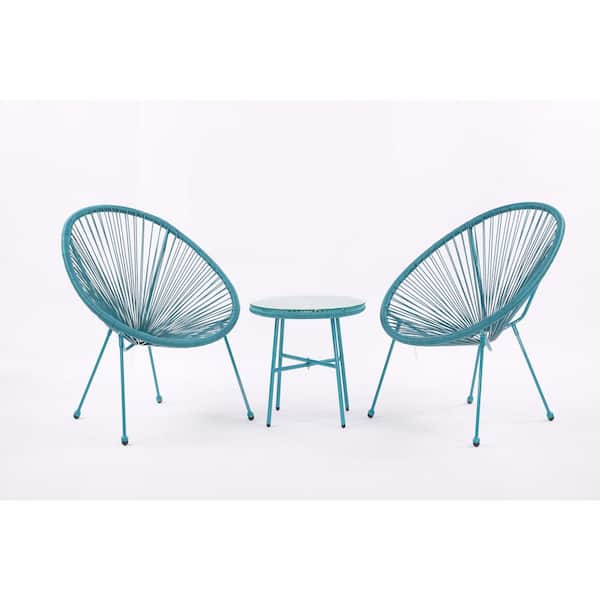 All Weather Blue 3-Piece Sling Patio Conversation Set with Side Table Outdoor Flexible Rope Furniture Rattan Chair Sets