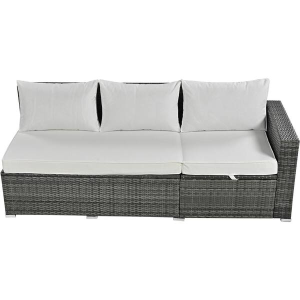 All-Weather Grey 6-Piece Wicker Patio Conversation Sectional Seating Set with Beige Cushions Adjustable Seat