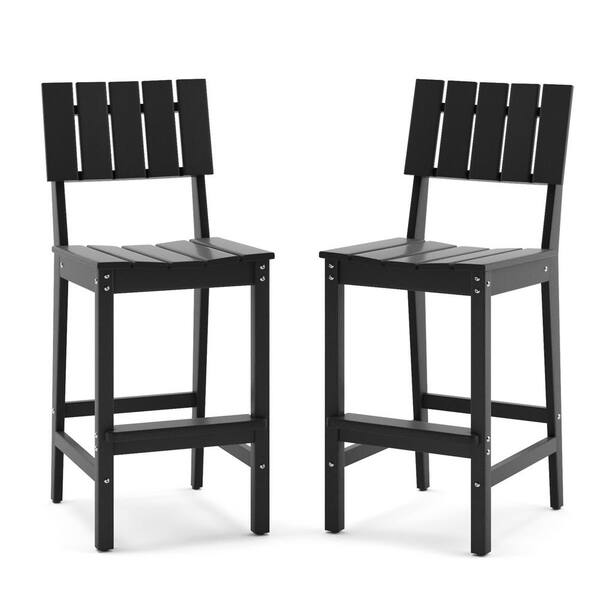 All-Weather HDPE Plastic Outdoor Bar Stools in Black (2-Pack)