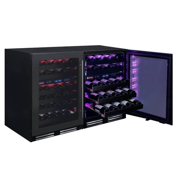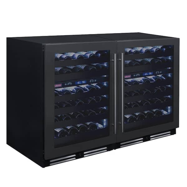 100-Bottle 34 in. Tall Four Zone Side-by-Side Wine Cellar Cooling Unit in Black Stainless Steel