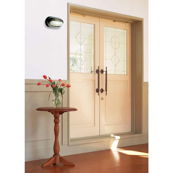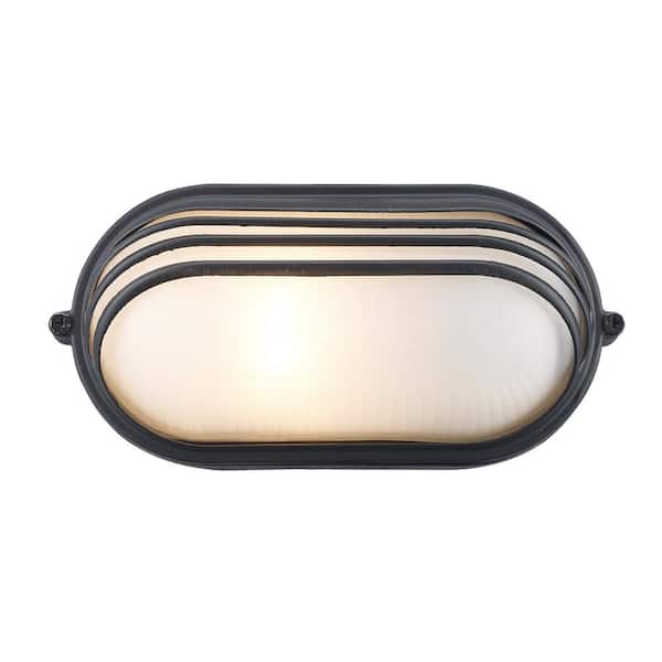Allegra 8.5 in. 1-Light Black Oval Bulkhead Outdoor Wall Light Fixture with Ribbed Glass