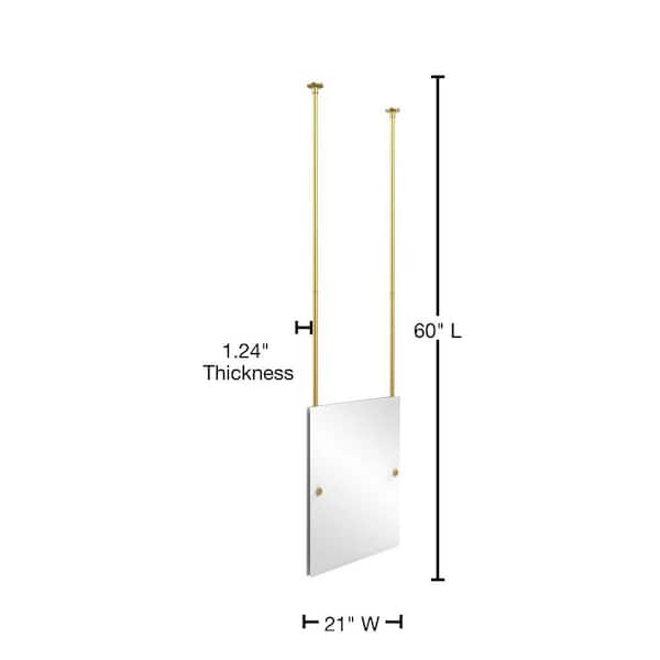 21 in. x 26 in. Frameless Rectangle Ceiling Hung Mirror in Polished Brass