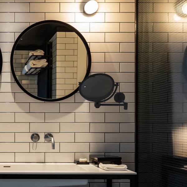 8 in. W x 10 in. H Small Large Round Tri Fold Metal Framed Magnifying Wall Bathroom Vanity Mirror in Antique Bronze