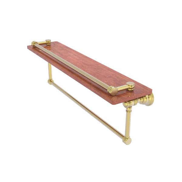Carolina 22 in. W x 7.4 in. H x 5.54 in. D Brass Rectangular Wood Gallery Shelf with Towel Bar in Satin Brass