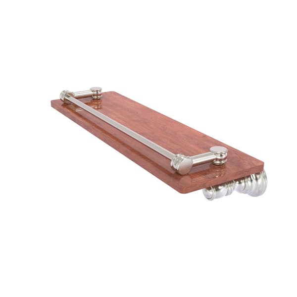 Carolina Collection 16 in. W x 3.3 in. H x 5.54 D Wood Rectangular Shelf in Satin Nickel with Gallery Rail