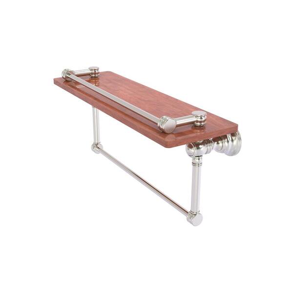 Carolina Collection 16 in. W x 7.4 in. H x 5.54 in. D Brass Rectangular Gallery Wood Shelf Towel Bar in Satin Nickel