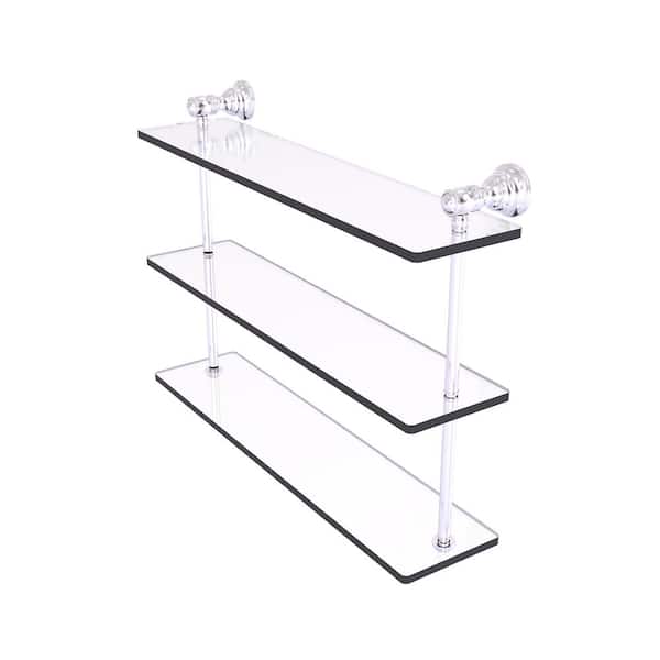 Carolina Collection 22 in. x 16 in. H x 5.54 in. D Brass Rectangular Triple Glass Shelf in Satin Chrome
