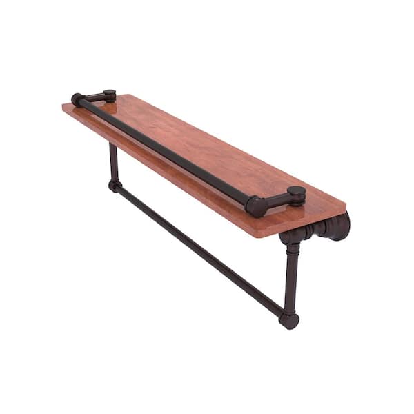 Carolina Collection W 22 in. x H 7.4 in. x D 5.54 in. Brass Rectangular Wood Gallery Shelf Towel Bar in Antique Bronze
