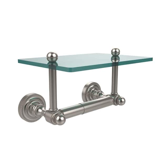 Dottingham Collection Double Post Toilet Paper Holder with Glass Shelf in Satin Nickel