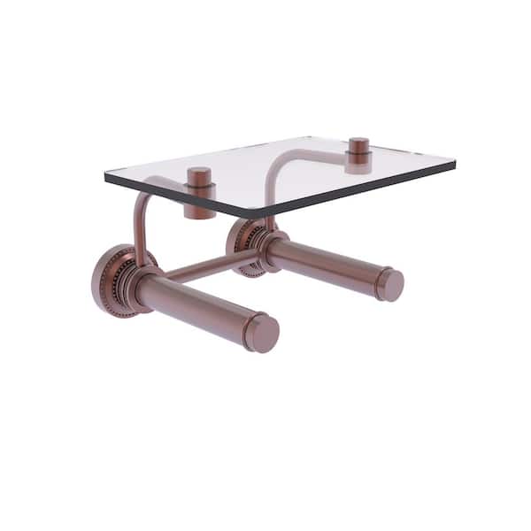 Dottingham Collection Wall Mounted Toilet Paper Holder in Antique Copper with Glass Shelf