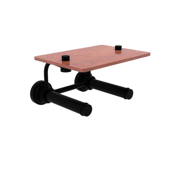 Dottingham Collection Wall Mounted Toilet Paper Holder in Matte Black with Wood Shelf