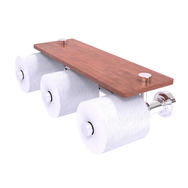 Dottingham Collection Wall Mounted Toilet Paper Holder in Polished Chrome with Wood Shelf
