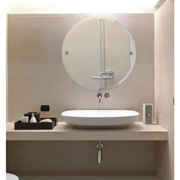 Montero Collection 22 in. x 22 in. Contemporary Round Frameless Tilt Mirror with Beveled Edge in Matte Gray