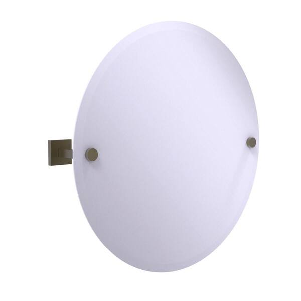 Montero Collection Contemporary Frameless Round Tilt Mirror with Beveled Edge in Antique Brass