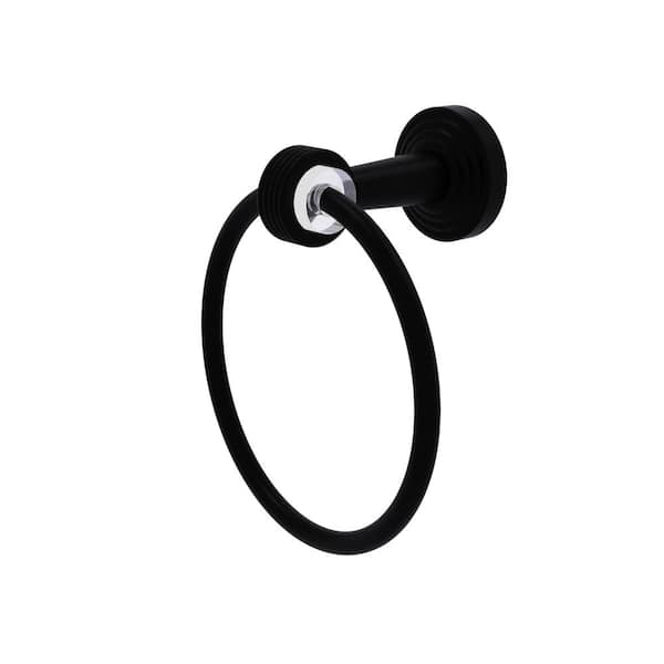Pacific Beach Collection Wall Mounted Towel Ring with Groovy Accents in Matte Black