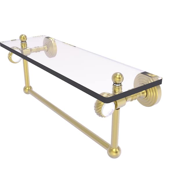 Pacific Grove 16 in. W x 6.4 in. H x 5.13 D Glass Rectangular Shelf in Satin Brass with Towel Bar and Twisted Accents