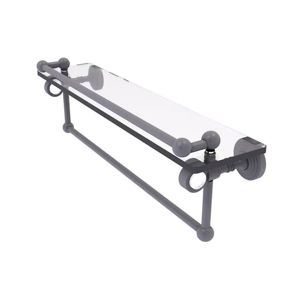 Pacific Grove 22 in. W 6.8 in. H x 5.5 in. D Glass Rectangular Shelf in Matte Gray with Gallery Rail and Towel Bar