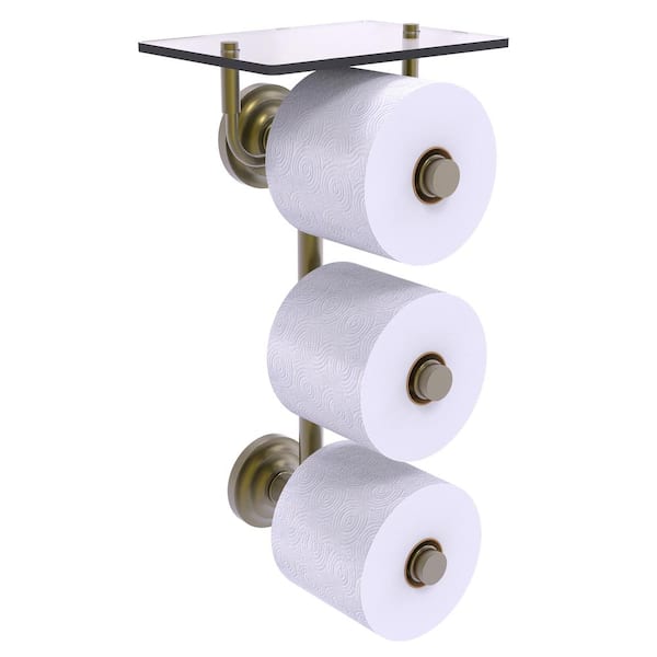 Que New 3-Roll Toilet Paper Holder with Glass Shelf in Antique Brass