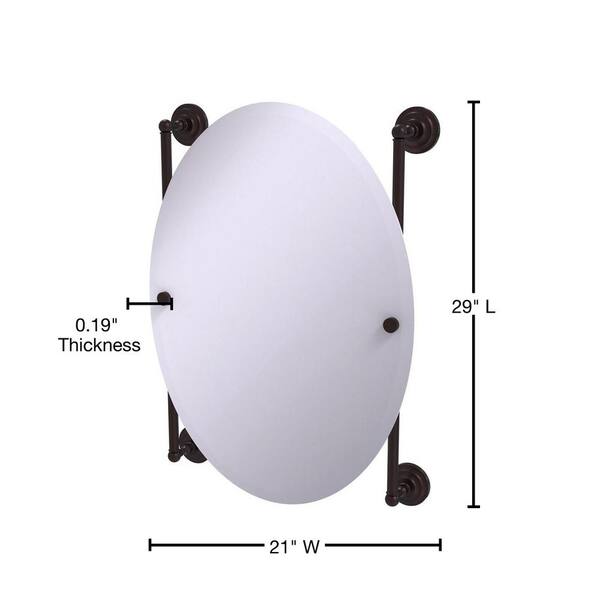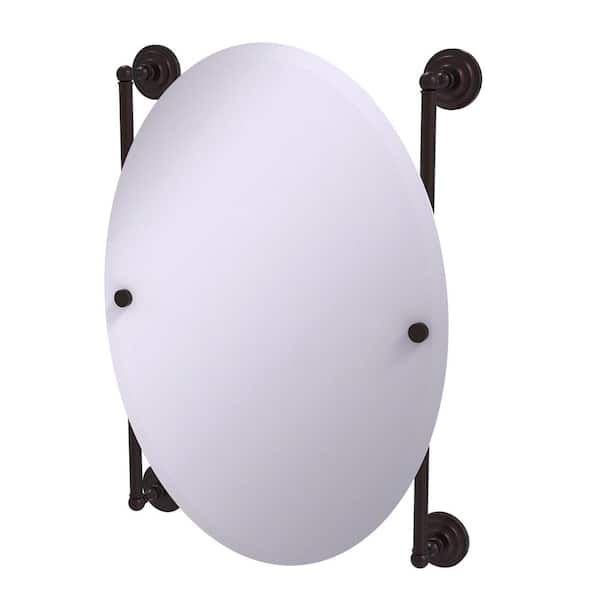 Que New Collection Oval Frameless Rail Mounted Mirror in Antique Bronze