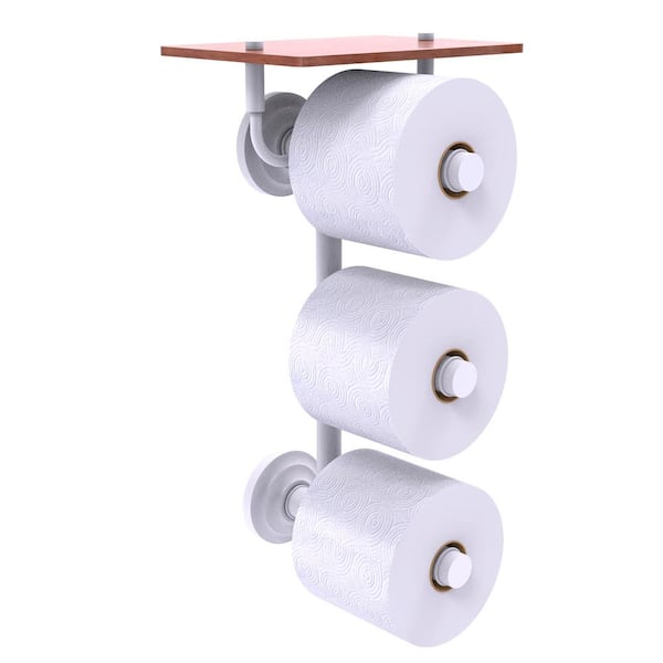 Que New Collection Wall Mounted Toilet Paper Holder in Matte White with Wood Shelf