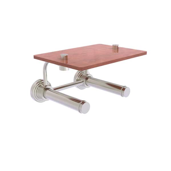 Waverly Place 2-Roll Toilet Paper Holder with Wood Shelf in Satin Nickel