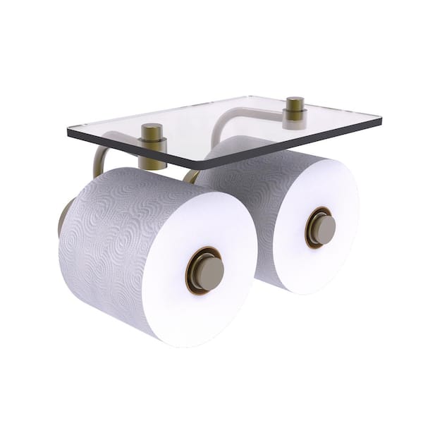 Waverly Place Collection Wall Mounted Toilet Paper Holder in Antique Brass with Glass Shelf