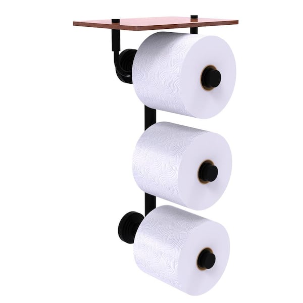 Waverly Place Collection Wall Mounted Toilet Paper Holder in Matte Black with Wood Shelf