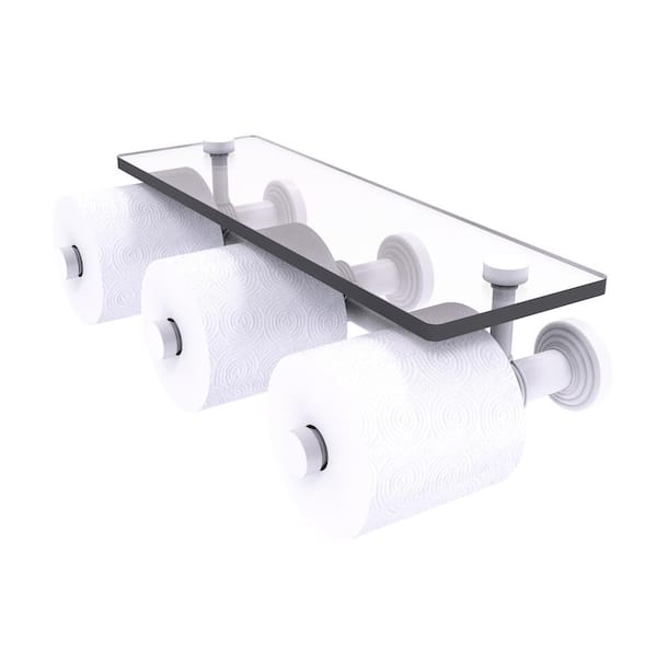 Waverly Place Collection Wall Mounted Toilet Paper Holder in Matte White with Glass Shelf